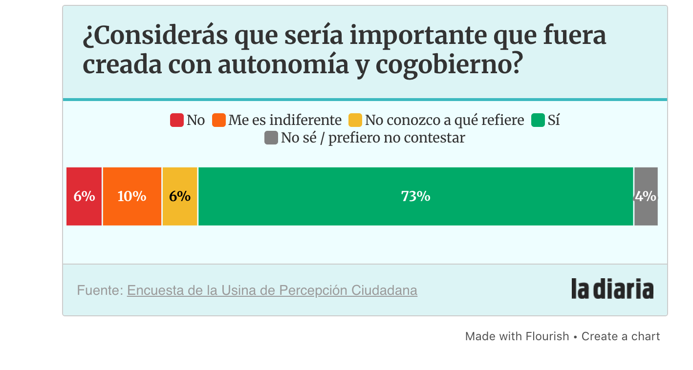Vinculado a la UNED, la muestra también permitió ver, entre quienes están a favor de un nuevo ente, la cantidad de encuestados que está de acuerdo y considera “importante” que la creación vaya de la mano con la autonomía y el cogobierno, uno de los puntos clave de la discusión entre oficialismo y oposición. El porcentaje que respondió que sí es elevado: para el 73% es importante que la UNED se cree con autonomía y cogobierno, mientras que el rechazo a esto sólo es posición del 6%, igual porcentaje de quienes dijeron desconocer los conceptos. En tanto, el 10% respondió que le es indiferente y 4% no sabe o prefirió no responder.